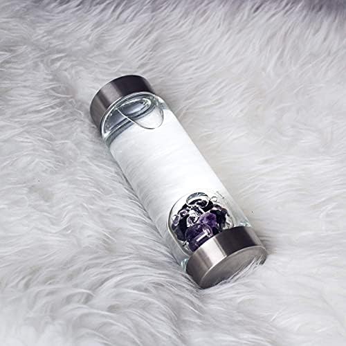 Amethyst, known for its calming and soothing energies, helps to cleanse the mind and release negative thoughts. By connecting you to higher realms of spiritual consciousness, Amethyst promotes mental clarity, emotional balance, and spiritual growth. Its radiant purple hues lend a captivating charm to this crystal water bottle.